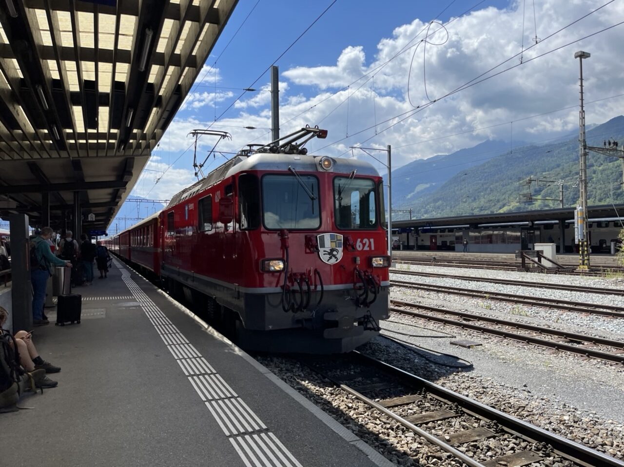 Das Perron bei unserem Bahnhof ist gepflästert: Einzelne Pflastersteine sind aneinander und nebeneinander gereiht und ergeben so die Fläche, auf der man auf den Zug wartet.