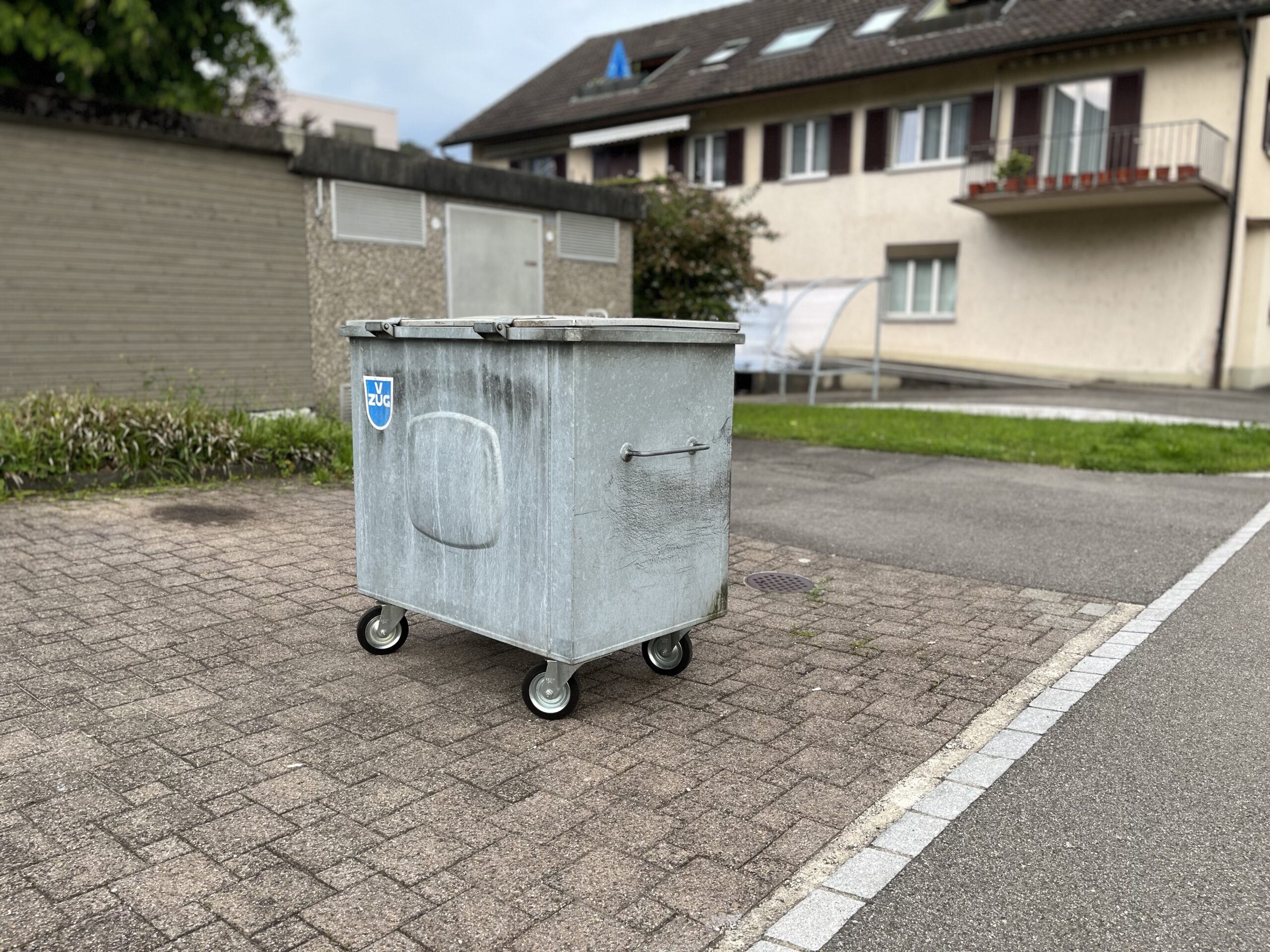 Heute jedoch fiel mir ein Container auf, der mitten im Nirgendwo, sicher zwanzig Meter entfernt vom nächsten Punkt, an der Strasse stand. Dass er mitgenommen wird, bezweifle ich nicht.