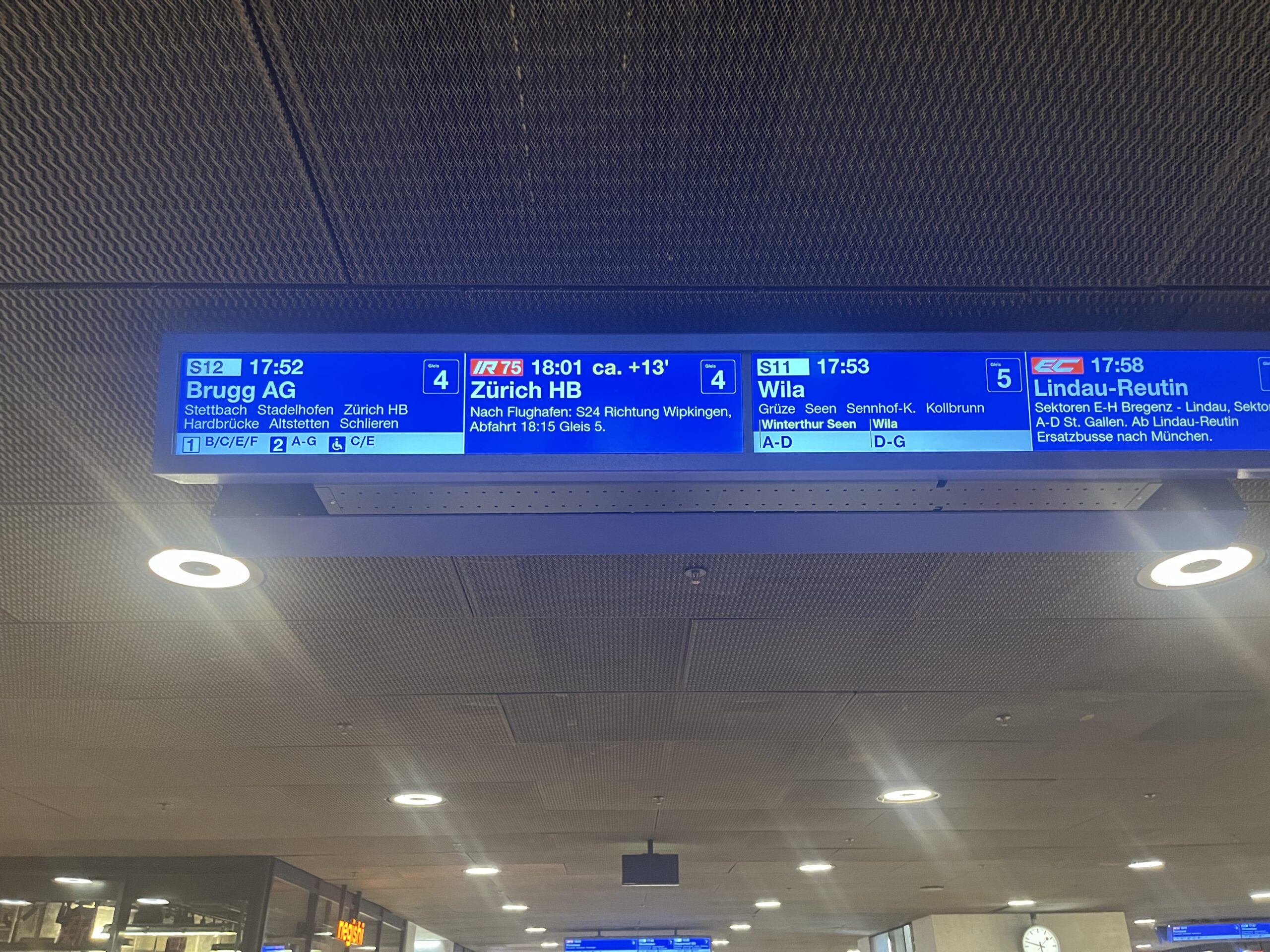 Gestern Abend hatte der IR 75 von Winterthur nach Zürich 13 Minuten Verspätung. Dreizehn! Manchmal nähme es mich ja schon wunder, wie sich eine solche Verspätung zwischen Konstanz – dem Ursprungsbahnhof – und Winterthur aufbauen kann. Auch wenn es mich diesmal nicht betraf: Fragen kann ich mich ja trotzdem.