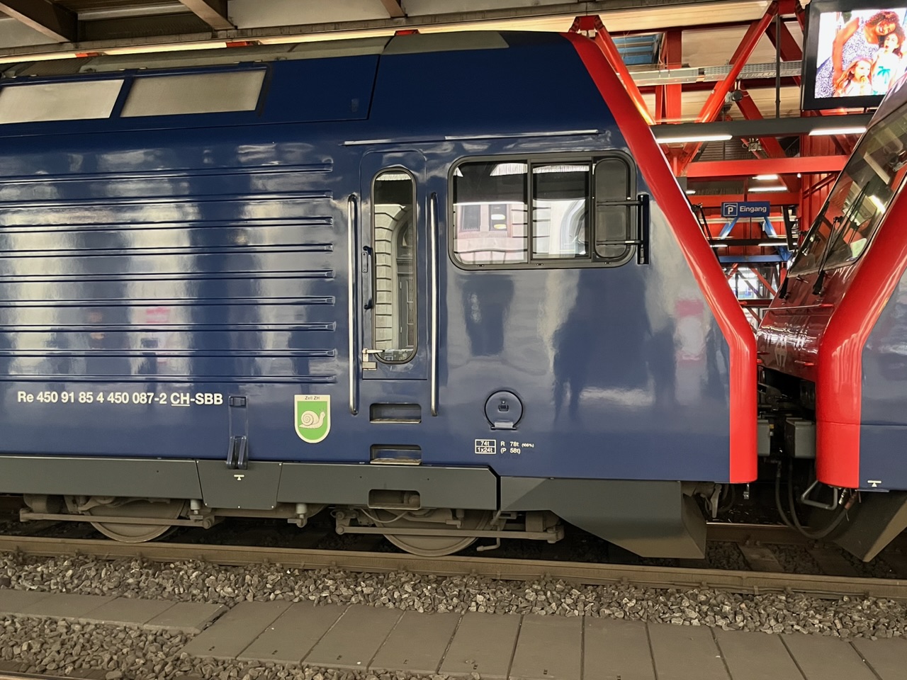 Nun denn: Gestern sah ich von nahem, was ich bisher nur von ferne, undeutlich zu sehen geglaubt hatte: Es verkehrt auch eine S-Bahn der 1. Generation – der blau-weissen mit der blauen Lok – auf dem ZVV-Netz, deren Lok die weisse Schnecke auf grünem Grund spazieren fährt.