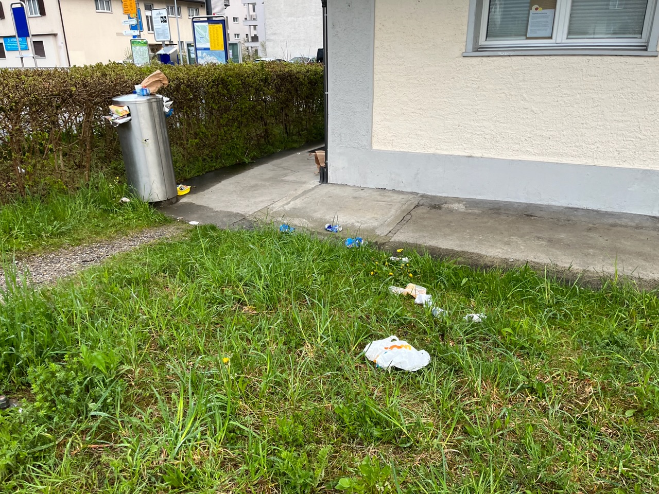 Zuerst begriff ich einige Zeit lang nicht, was an dieser Szenerie neu, anders ist. Einzig die grosse Sauerei, die einmal mehr rund um den Abfalleimer bei uns am Bahnhof herrschte, regte mich auf: Ganze leere Six-Packs Bier inklusive Karton waren am Sonntagmorgen ebenso verstreut wie weitere Zeugen der vergangenen Nacht.