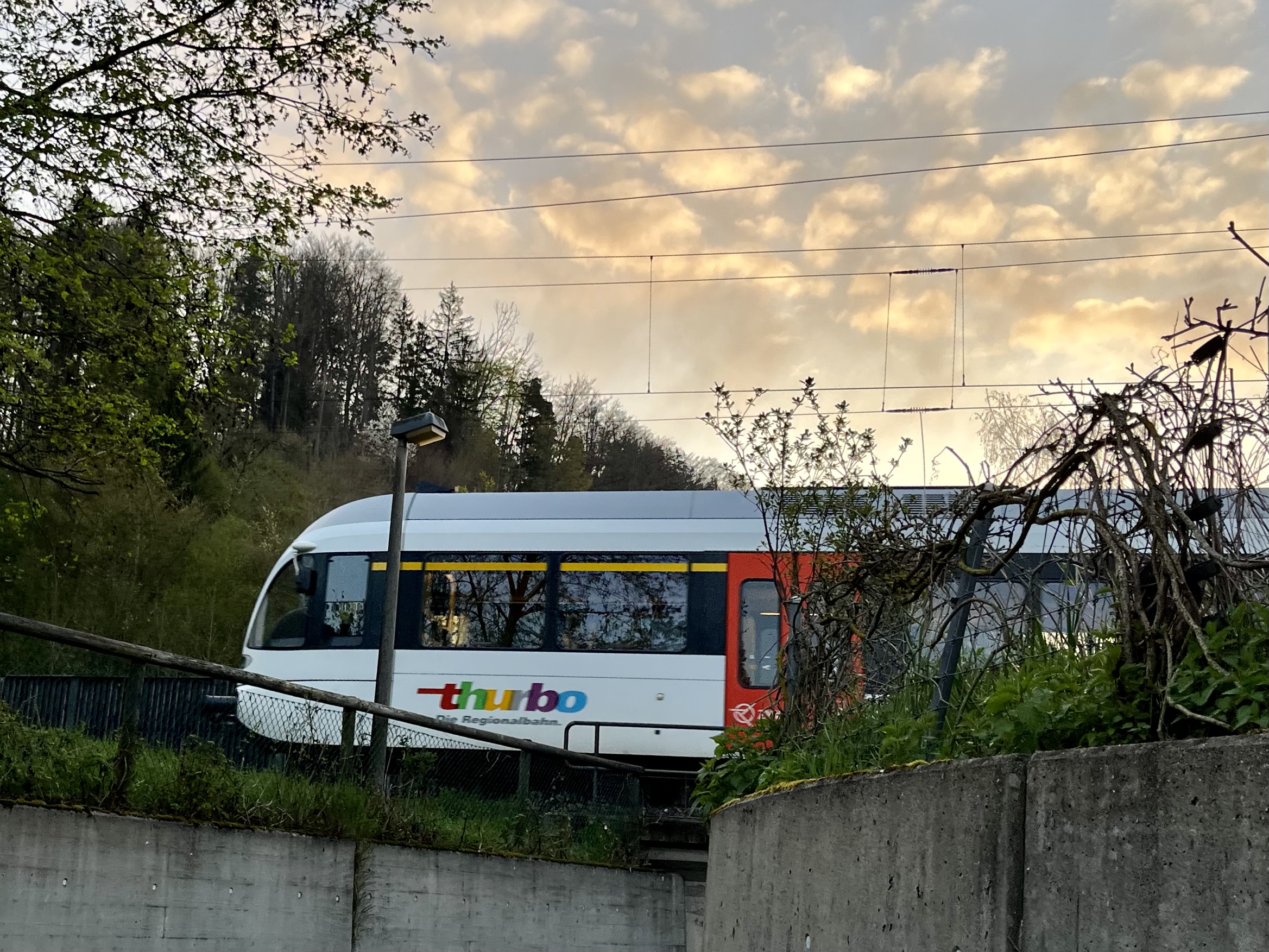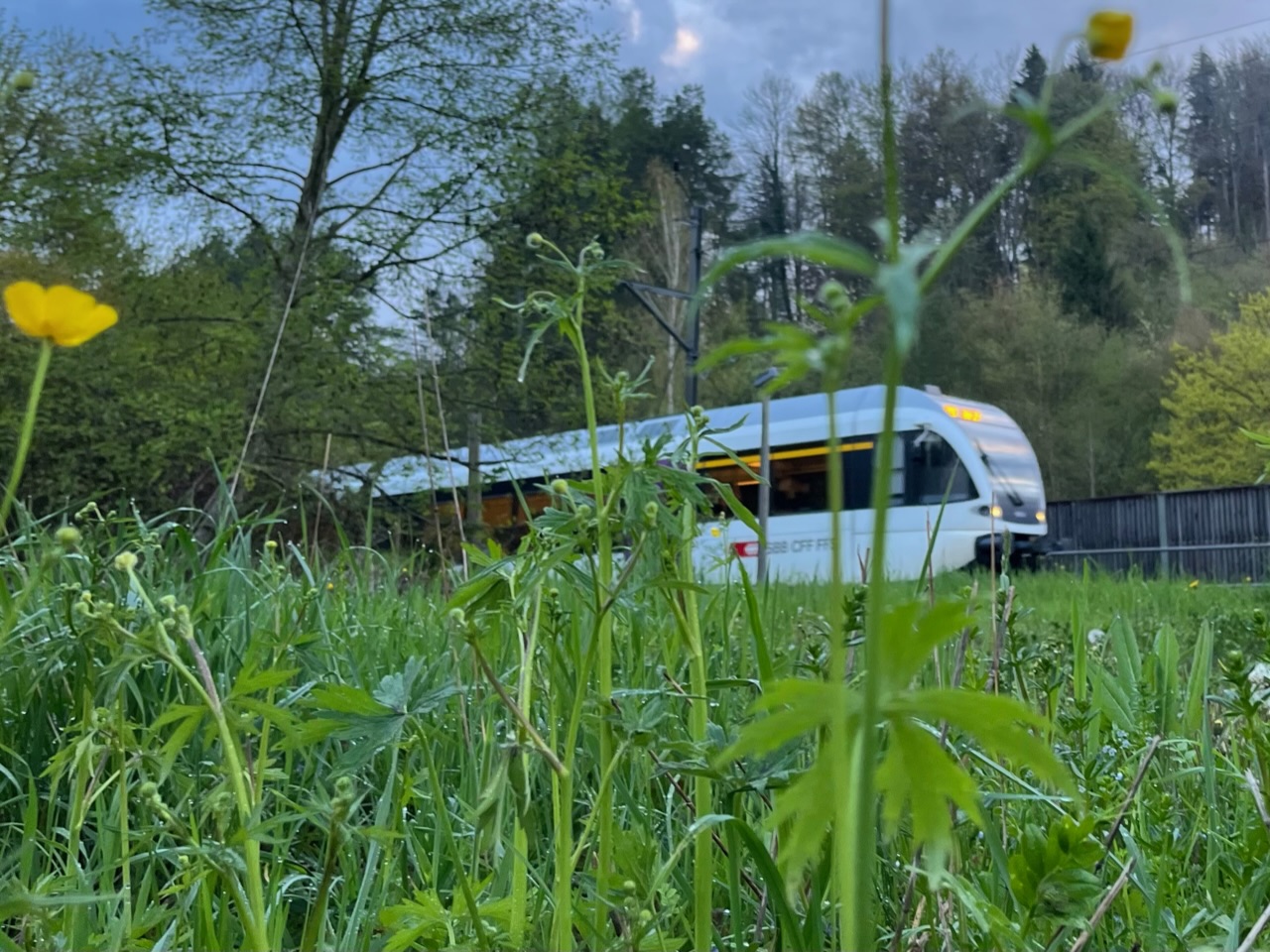 Dass weder der Vordergrund noch der Zug ganz scharf sind, habe ich gemerkt. Dennoch finde ich das Bild – es ist wie jene vom Dienstag kurz nach der Unterführung entstanden – sehr gelungen.