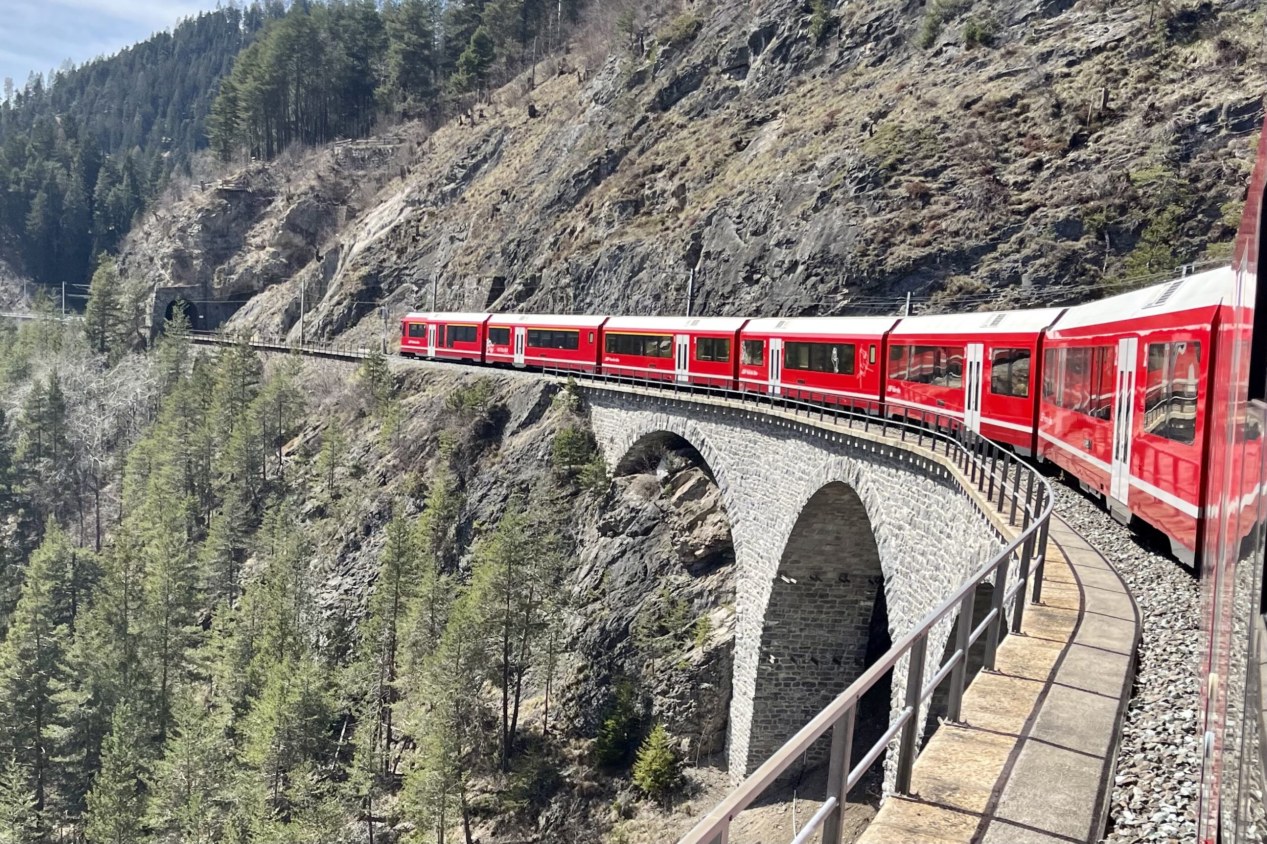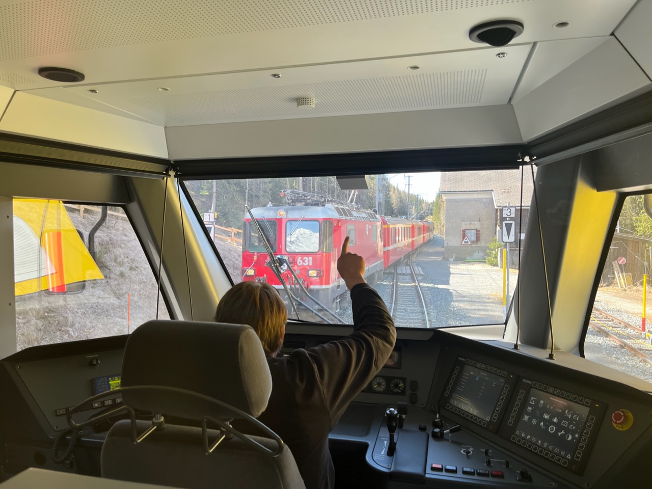 Nach St. Moritz gefahren waren wir am Ostermontag nicht nur zum Selbstzweck: Unser Ziel war es, die Albulastrecke mit all ihren Tunnels, Viadukten und anderen Zeugnissen der Ingenieurskunst zu befahren. Unglaublich, diese Tunnels, die zwischen Preda und Bergün mit bis zu 270-Grad-Drehungen in den Berg getrieben wurden!