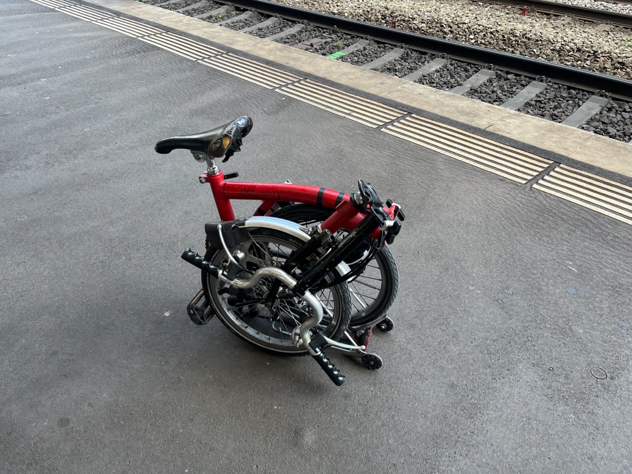 Was vorgestern jedoch teilweise mutterseelenallein auf dem Perron im Bahnhof Stadelhofen herumstand, war ebenfalls sehr speziell: Es handelte sich um ein Faltrad erster Güte! Ich habe wohl noch nie ein Velo gesehen, das sich so klein zusammenfalten lässt!