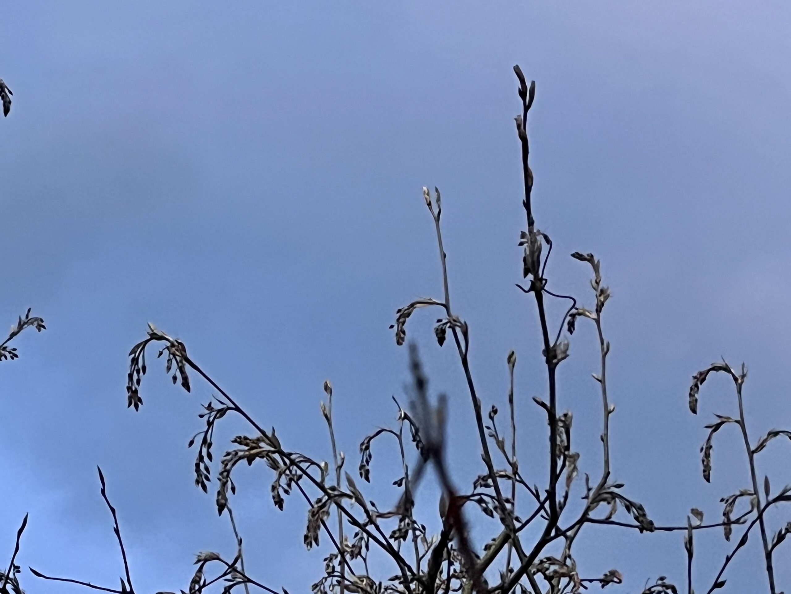 Heute Morgen gelang es mir, einen Blick auf ein Rotkehlchen zu werfen, das hoch oben auf einem noch kahlen Baum sass und Reissaus nahm, als ich kam.