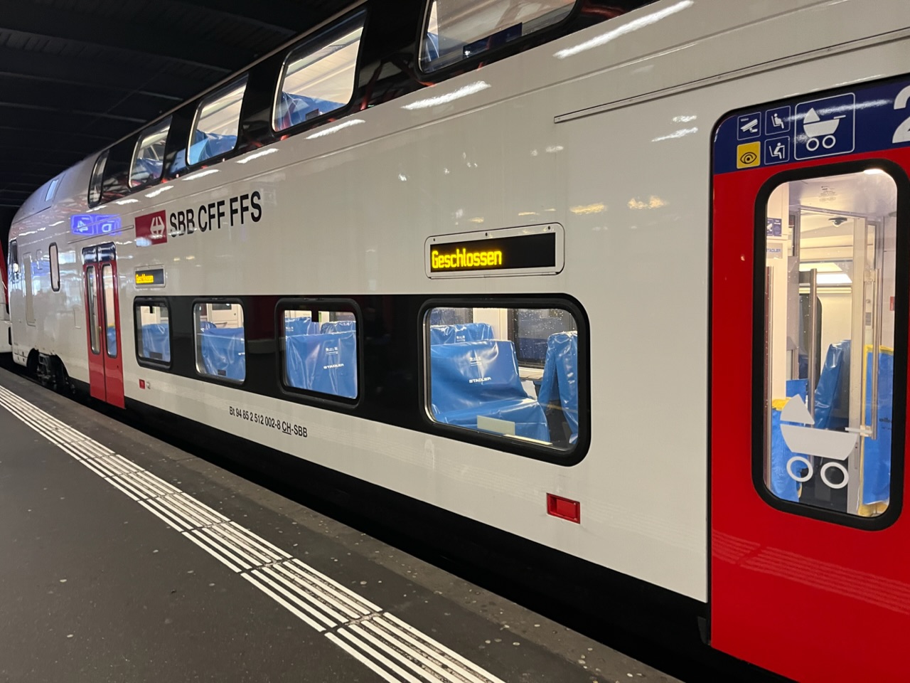 Am Freitagnachmittag ergab es sich, dass ich in Winterthur auf einem Perron ausstieg, an dem auf der anderen Seite ein neuer Zug stand. Ein wirklich neuer Zug. Virgin, jungfräulich sozusagen, wie aus dem Ei gepellt. Er war so neu, dass sogar die Sitzbänke noch mit Plastik eingepackt waren: 2. Klasse blau, 1. Klasse beige.