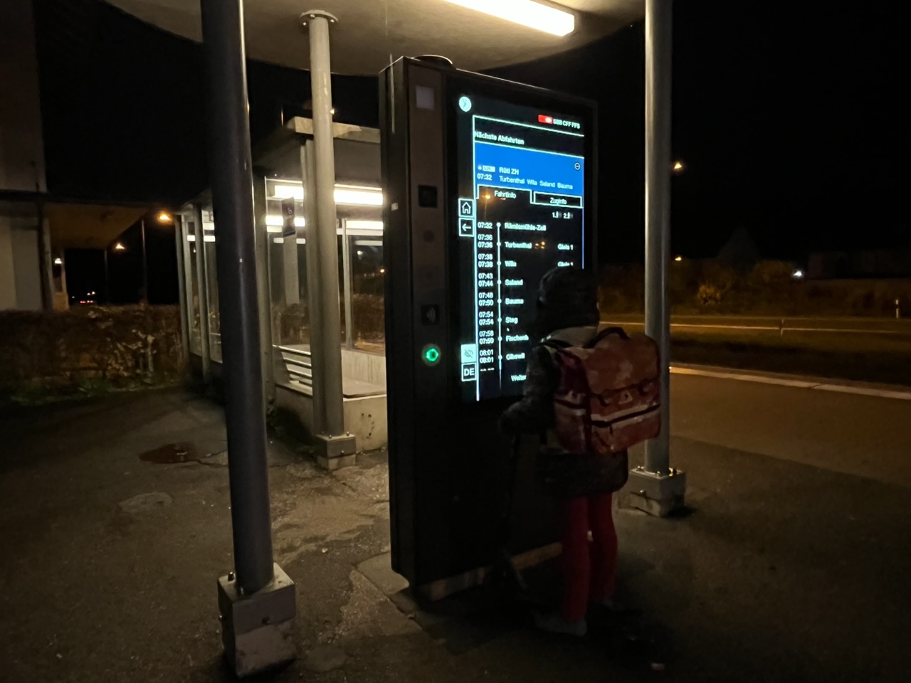 Unsere S26 fährt um 07:17 in Winterthur ein, und die S23 wartet auf dem Nachbarsgleis. Um 07:19 geht die Reise weiter. Meist sind wir früher dran und können sogar auf die S23 warten. Gestern jedoch, da stand sie schon da; unser Zug fuhr um 07:18 ein. Die Ungeduld des Lokführers war förmlich greifbar: Um genau 07:19 und 0 Sekunden würde er die Türen blockieren und losfahren. Vorher durfte er noch nicht. Dumm gelaufen: Ich stand gleich an der vordersten Tür…