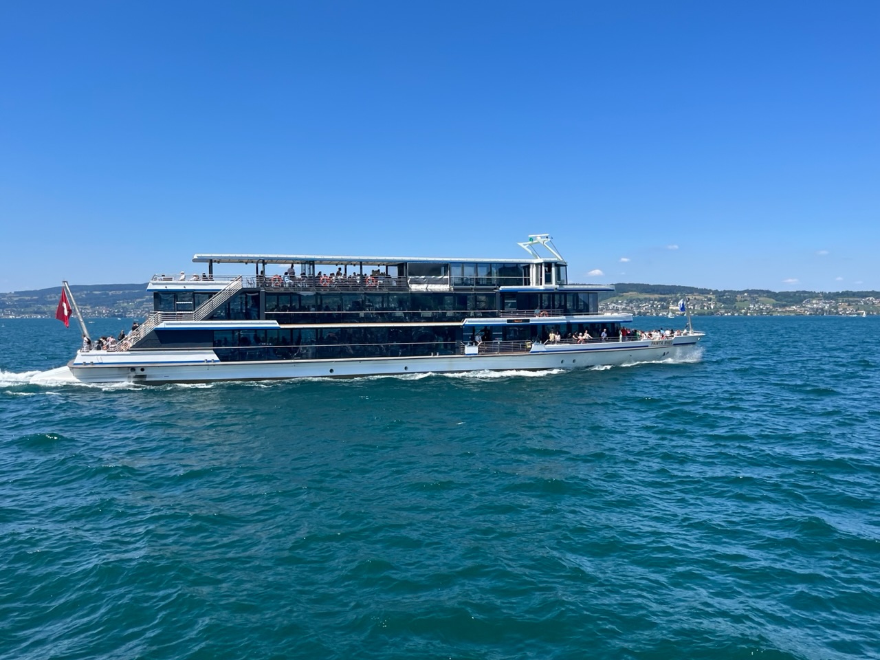 Eine noch engere Bindung als an die DS „Stadt Rapperswil“, der wir am Samstag während unserer Rundfahrt begegneten, habe ich zum Schwesterschiff, der DS „Stadt Zürich“. Als Zürcher Unterländer war mir die Stadt Zürich per se schon immer näher, und als das Schiff vor mehr als vierzig Jahren, 1981, nach zweijähriger Restaurationszeit wieder eingesetzt wurde, konnte ich als Knabe bei der ersten Fahrt dabei sein. Diese war, so viel ich weiss, durch die Migros organisiert worden.