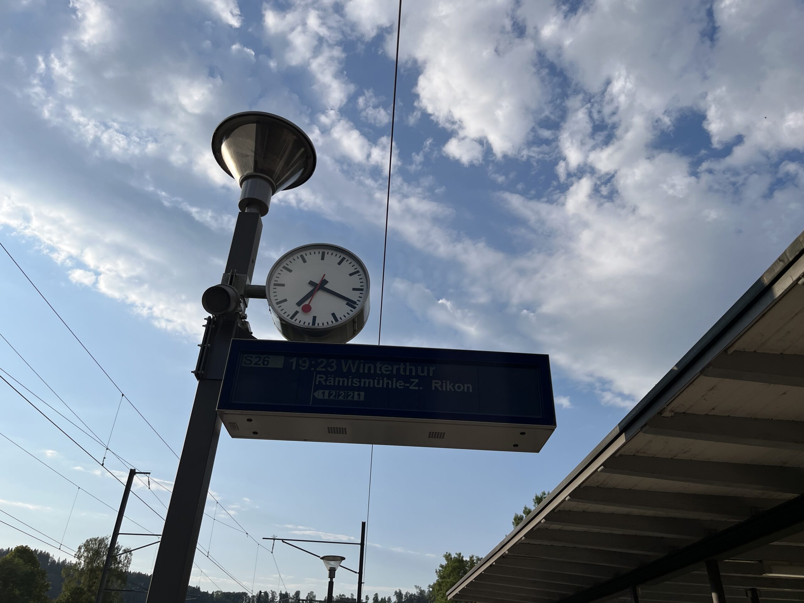 Die elektronischen Anzeigetafeln an den Bahnhöfen sind in einen dunkelgrau eloxierten Metallrahmen eingefasst, der links etwa zehn Zentimeter breit abgesetzt ist. Im unteren Teil sind verschiedene Dinge und Signete zu sehen: Ein WLAN-Symbol, eine Kamera, ein Mikrofon, eine Taste mit Lautsprechersymbol für Sehbehinderte und ebendieser Lautsprecher. Die restliche Bedienung erfolgt über den Touchscreen. In der obersten Ecke hat es zudem eine quadratische, milchig weisse Fläche, die manchmal leuchtet und manchmal nicht. Blinken habe ich sie noch nie gesehen, nur ein- oder ausgeschaltet.